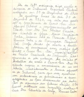 Ata da 140ª Sessão Ordinária do Tribunal Regional Eleitoral de Minas Gerais, realizada em 30/12/1946, às 14:00 horas, na sala das sessões.