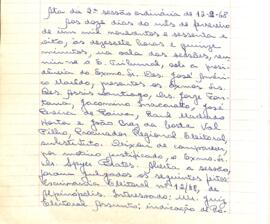Membros presentes: Jose Assis Santiago; Jorge Fontana; Jacomino Inacarato; Jose Perreira de Paiva; Raul Machado Horta; João Braz da Costa Val Filho.