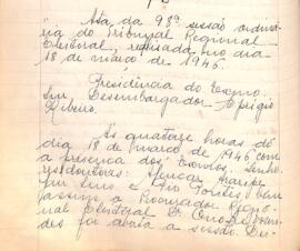 Ata da 98ª Sessão Ordinária do Tribunal Regional Eleitoral de Minas Gerais, realizada em 18/03/1946, às 14:00 horas, na sala das sessões.