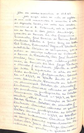 Ata da Sessão Ordinária do Tribunal Regional Eleitoral de Minas Gerais, realizada em 11/08/1967, às 17:00 horas, na sala de sessões.