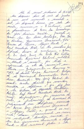 Membros presentes: Jose Assis Santiago; Jorge Fontana; Jacomino Inacarato; Jose Perreira de Paiva; Spyer Prates; Raul Machado Horta.